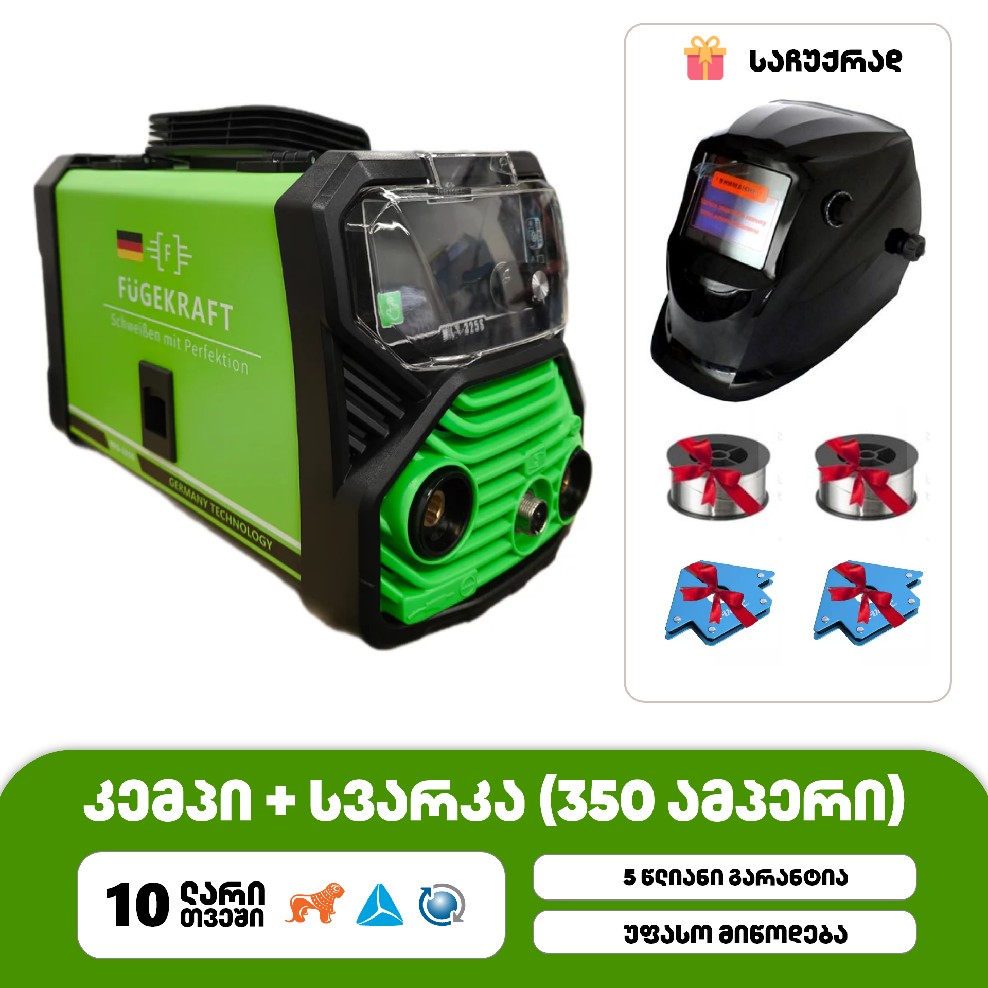 ადუღებს რკინას , ნერჟავეიკას, თუჯს ალუმინს, გააჩნია 185 ვოლტიდან დენის სტაბილიზება , მუშაობს ელექტროდით 4 ის ჩათვლით, კემპი 06, 08,1.0, 1.2 მმ მავთულზე,
